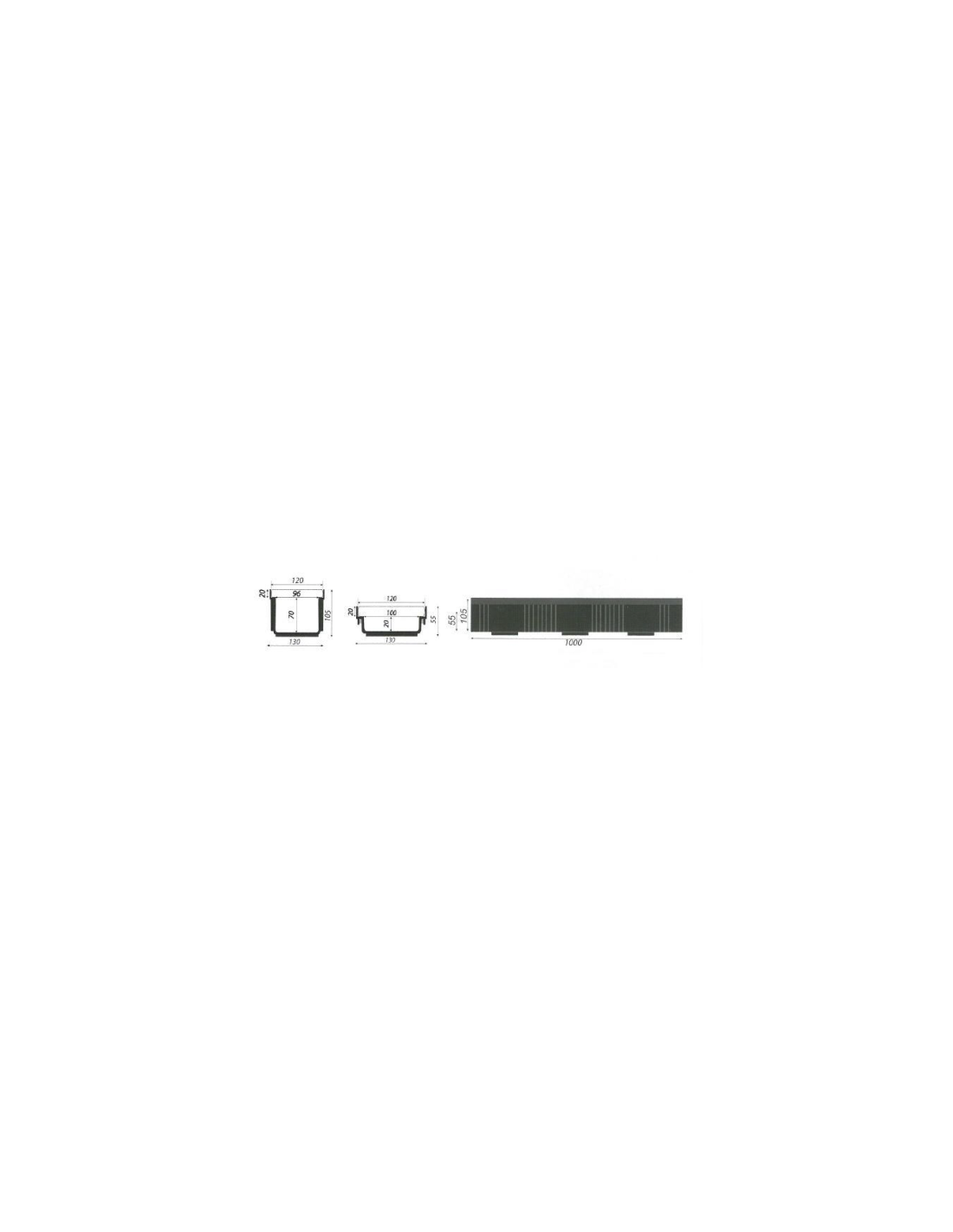 Ydermål: længde 1000 mm / bredde 130 mm / højde 105 mm