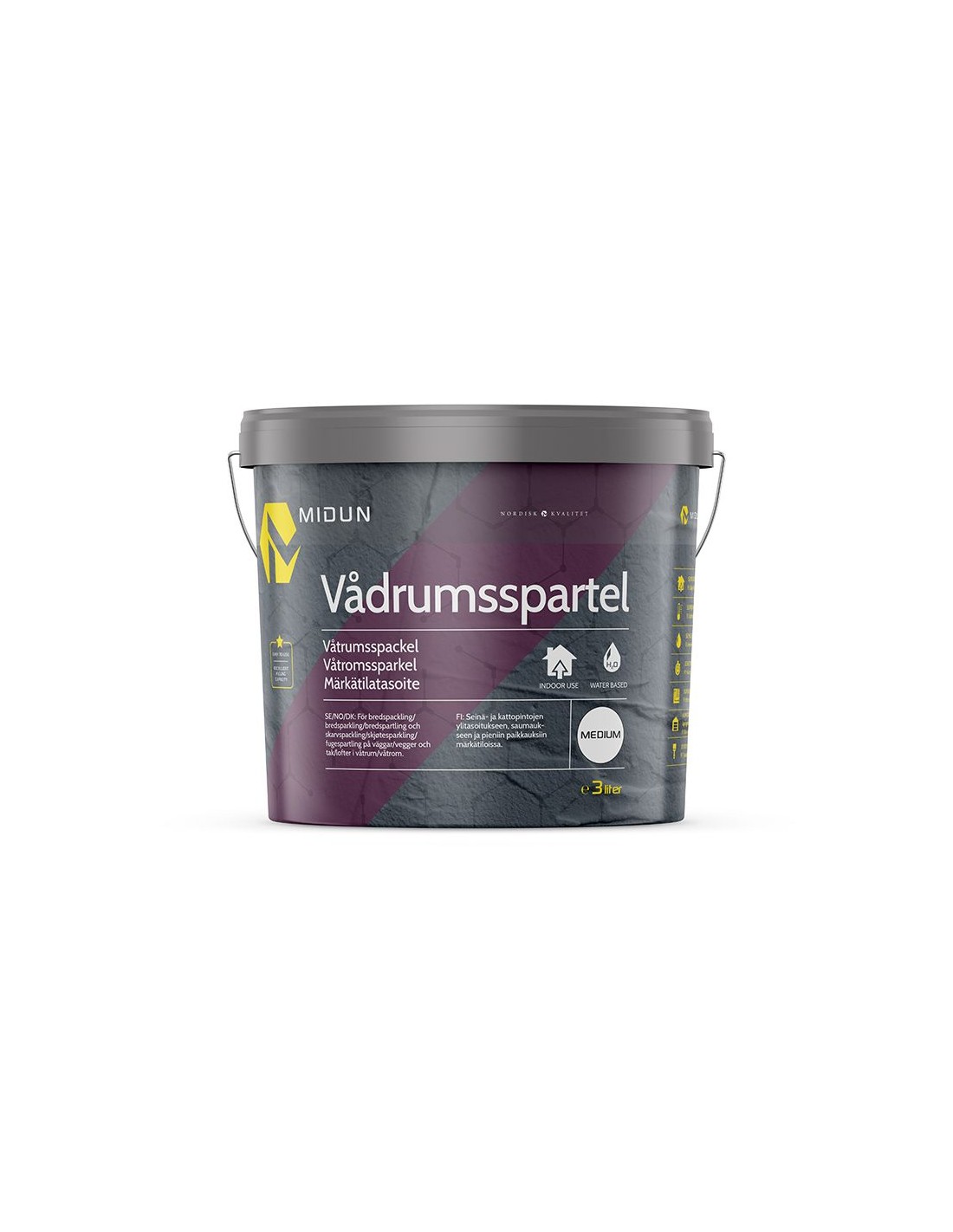 Midun Letvægts spartel er et vandbaseret, finkornet, let hånd- og fugefyldstof til vådrum.