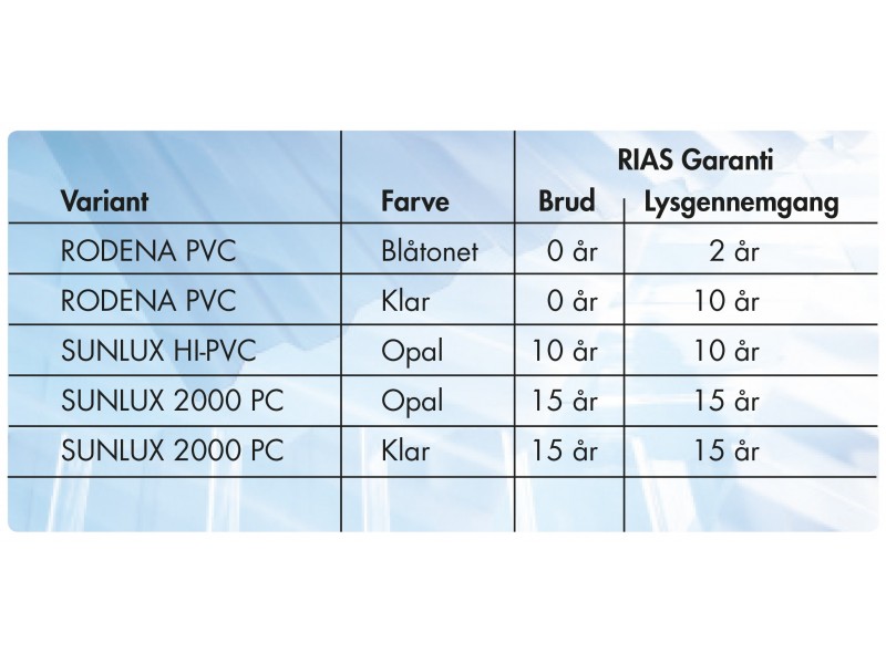 | RIAS-garanti, lysgennemgang | 15 år |